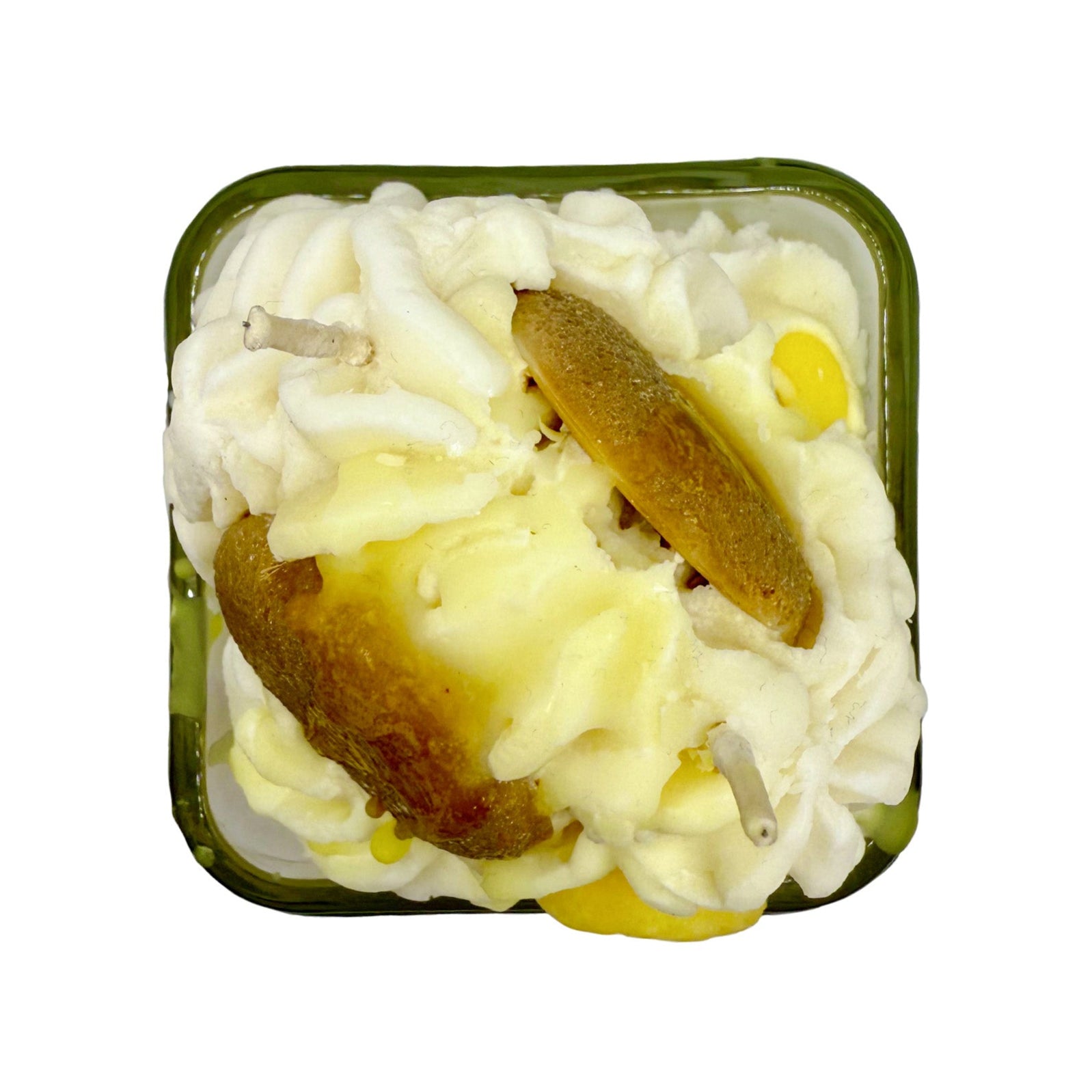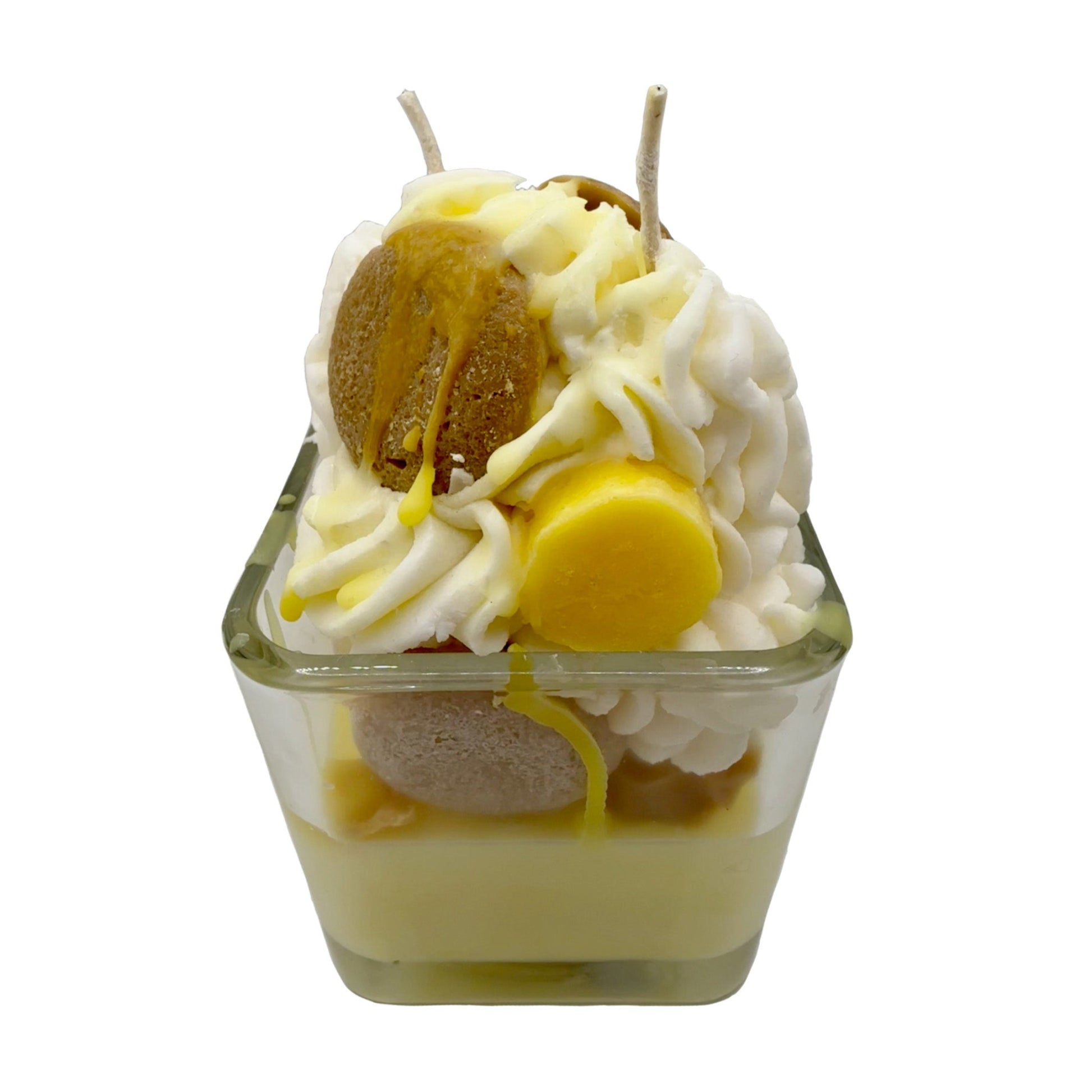 Indulge in the charm of our Banana Pudding Candle with 2 wicks, a dessert-inspired masterpiece designed to fill your space with warmth, coziness, and delightful fragrance. This 13-ounce candle looks and smells just like the classic treat, making it an irresistible addition to your home or the perfect gift for dessert lovers.