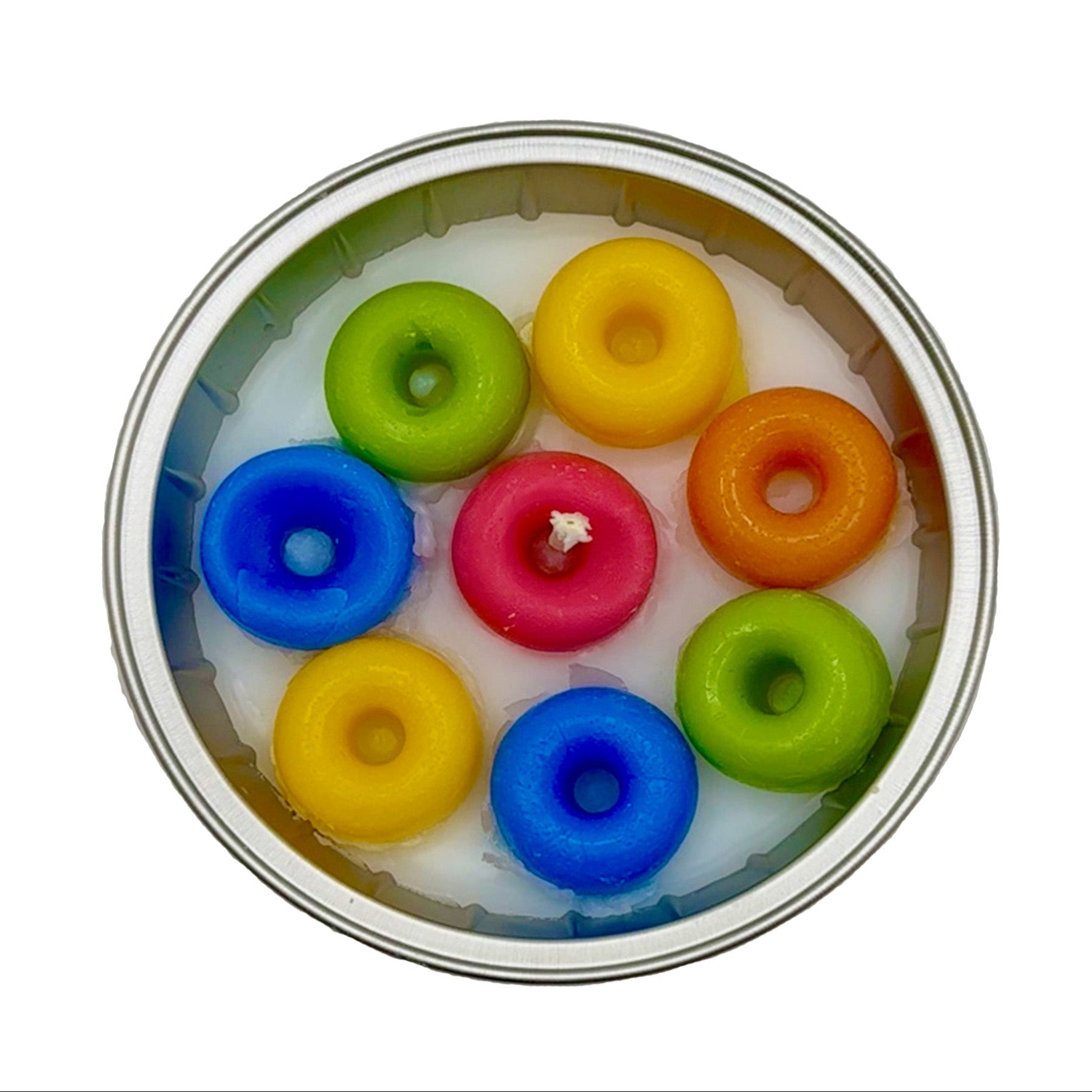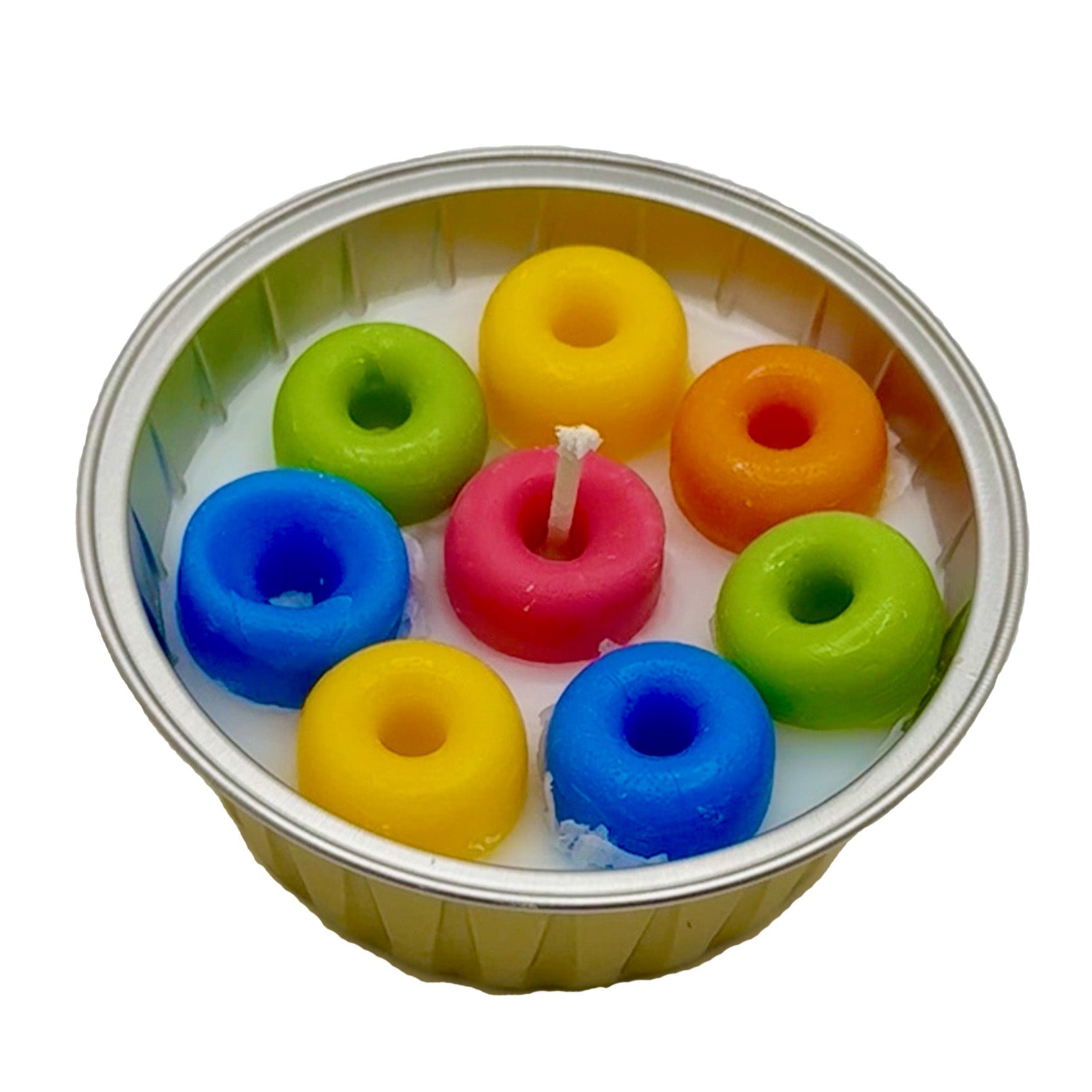 This froot loop inspired cereal-themed candle evokes fond memories of breakfast tables from your childhood. Delightful fruit cereal decoration, makes it an excellent gift for anyone.